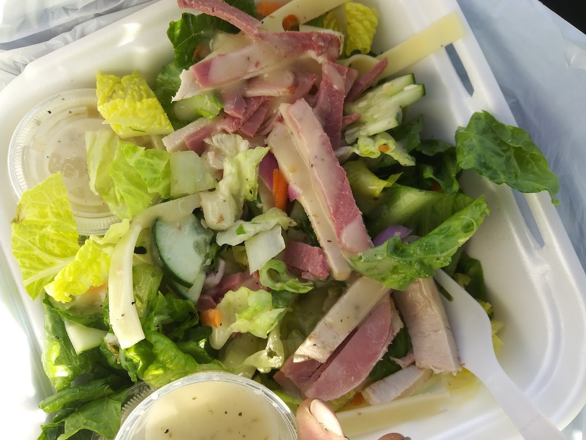 The vibe is trendy yet casual, making it an ideal spot for families, friends, or even a quick lunch break. Whether you're dining in or opting for takeout, the menu here offers a delightful array of options that cater to various tastes and needs. A notable highlight is the John Wayne Salad, a robust mix of romaine lettuce topped with diced Dearborn ham, Sy Ginsberg's corned beef, turkey, and Swiss cheese—each bite bursts with flavor. The Greek Salad is another standout, showcasing fresh ingredients like feta cheese and Kalamata olives, perfect for those leaning towards something lighter but equally satisfying.